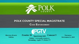 - Special Magistrate Code Enforcement: November 21, 2019