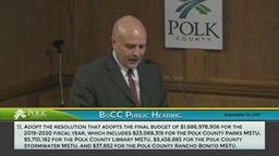 - BoCC Budget 2019/2020 Second Public Hearing: September 16, 2019