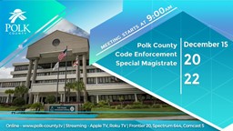 - Code Enforcement Special Magistrate: December 15, 2022