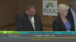 - Code Enforcement: June 21, 2018
